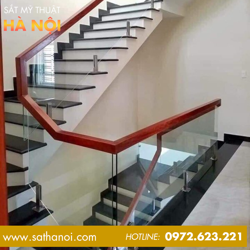 Sắt Mỹ Thuật Hà Nội chuyên thiết kế & thi công cầu thang kính theo yêu cầu, cam kết: