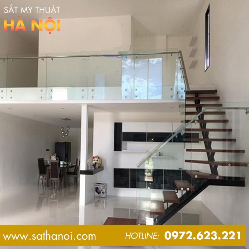 Sắt Mỹ Thuật Hà Nội chuyên thiết kế & thi công cầu thang kính theo yêu cầu, cam kết: