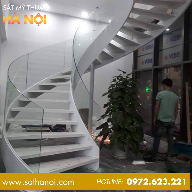 Sắt Mỹ Thuật Hà Nội chuyên thiết kế & thi công cầu thang kính theo yêu cầu, cam kết: