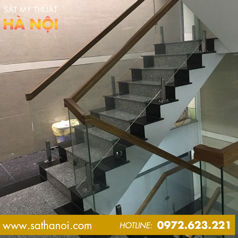 Sắt Mỹ Thuật Hà Nội chuyên thiết kế & thi công cầu thang kính theo yêu cầu, cam kết:
