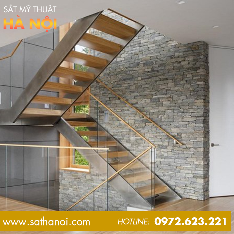 🔹 Cầu thang sắt, kính, xương cá : Hiện đại, sang trọng, tối ưu không gian.