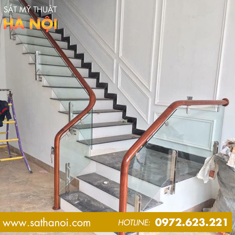 Sắt Mỹ Thuật Hà Nội chuyên thiết kế & thi công cầu thang kính theo yêu cầu, cam kết: