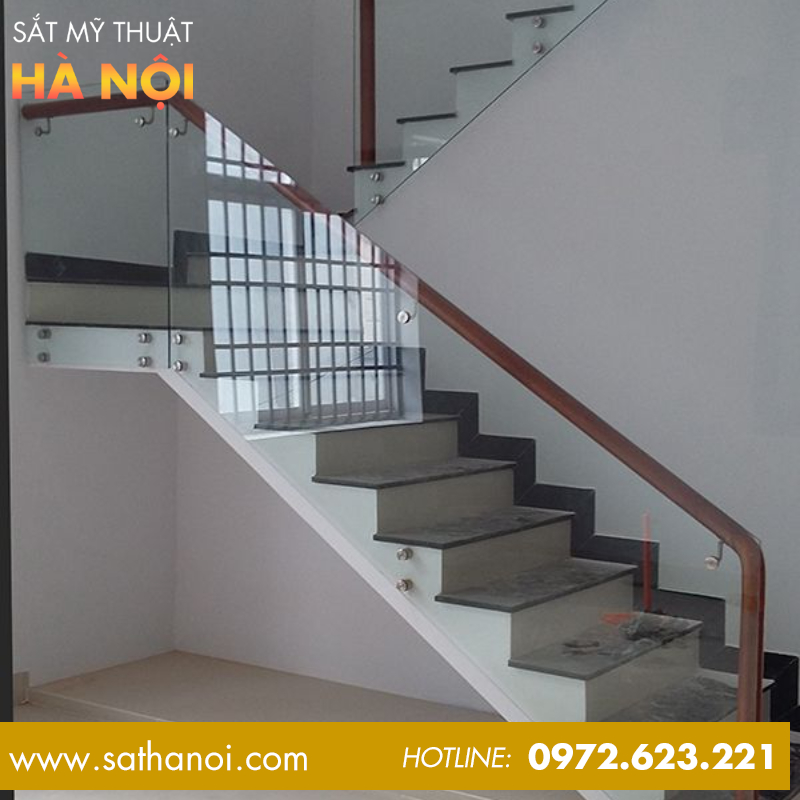 Sắt Mỹ Thuật Hà Nội chuyên thiết kế & thi công cầu thang kính theo yêu cầu, cam kết: