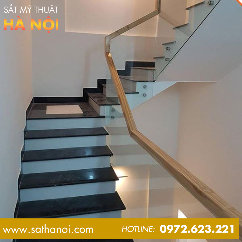 Sắt Mỹ Thuật Hà Nội chuyên thiết kế & thi công cầu thang kính theo yêu cầu, cam kết: