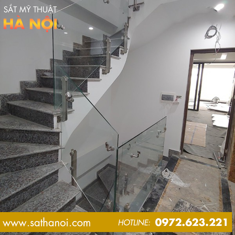 Sắt Mỹ Thuật Hà Nội chuyên thiết kế & thi công cầu thang kính theo yêu cầu, cam kết: